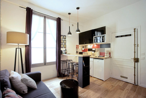 Il comprend une cuisine aménagée et équipée ouverte sur le séjour, une chambre, une salle d’eau avec WC.