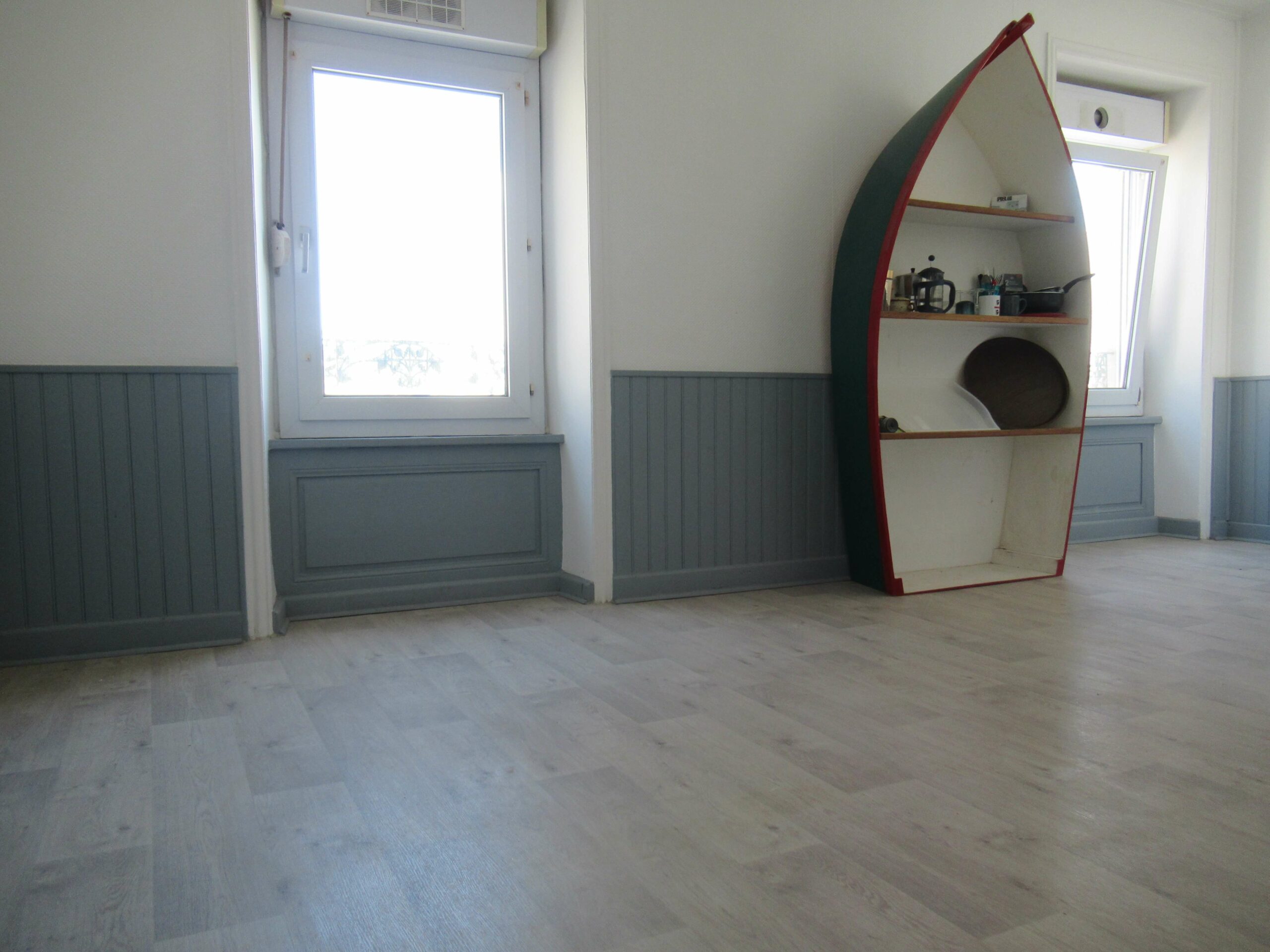 Audierne : vue Mer sur le port de plaisance et à 5min à pied de la plage des Capucins, au 2ème étage sur trois d’une petite copropriété soignée et bénévole, un appartement lumineux, au calme et seul sur le palier comprenant : une entrée/dégagement avec placard, un séjour avec vue sur mer, une cuisine à aménager ouverte sur le séjour, une chambre avec placard côté cour, une salle de bains avec WC.