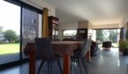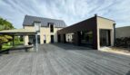 – au rez-de-chaussée : un hall d’entrée avec placard donne sur un vaste séjour-salle à manger, salon, coin feu et cuisine semi-ouverte aménagée et équipée par du matériel de qualité, tout cet espace mesure 71m² et ouvre sur une vaste terrasse entourant la maison ; une suite parentale comprenant un grand dressing aménagé, une salle d’eau privative et ayant un accès direct à la terrasse ; un bureau ; un séjour supplémentaire de 46m² ayant son propre accès à l’extérieur également ; une arrière-cuisine aménagée et équipée ; des WC séparés