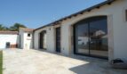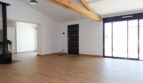 La construction comprend en son centre : une entrée donnant sur un vaste séjour-salle à manger et cuisine ouverte restant à aménager selon les choix et goûts de chacun (toute l’installation est prête et en attente, possibilité de fermer l’espace cuisine), tout cet espace mesure 58m² et ouvre sur la terrasse orientée Ouest ; une buanderie, et des WC séparés.